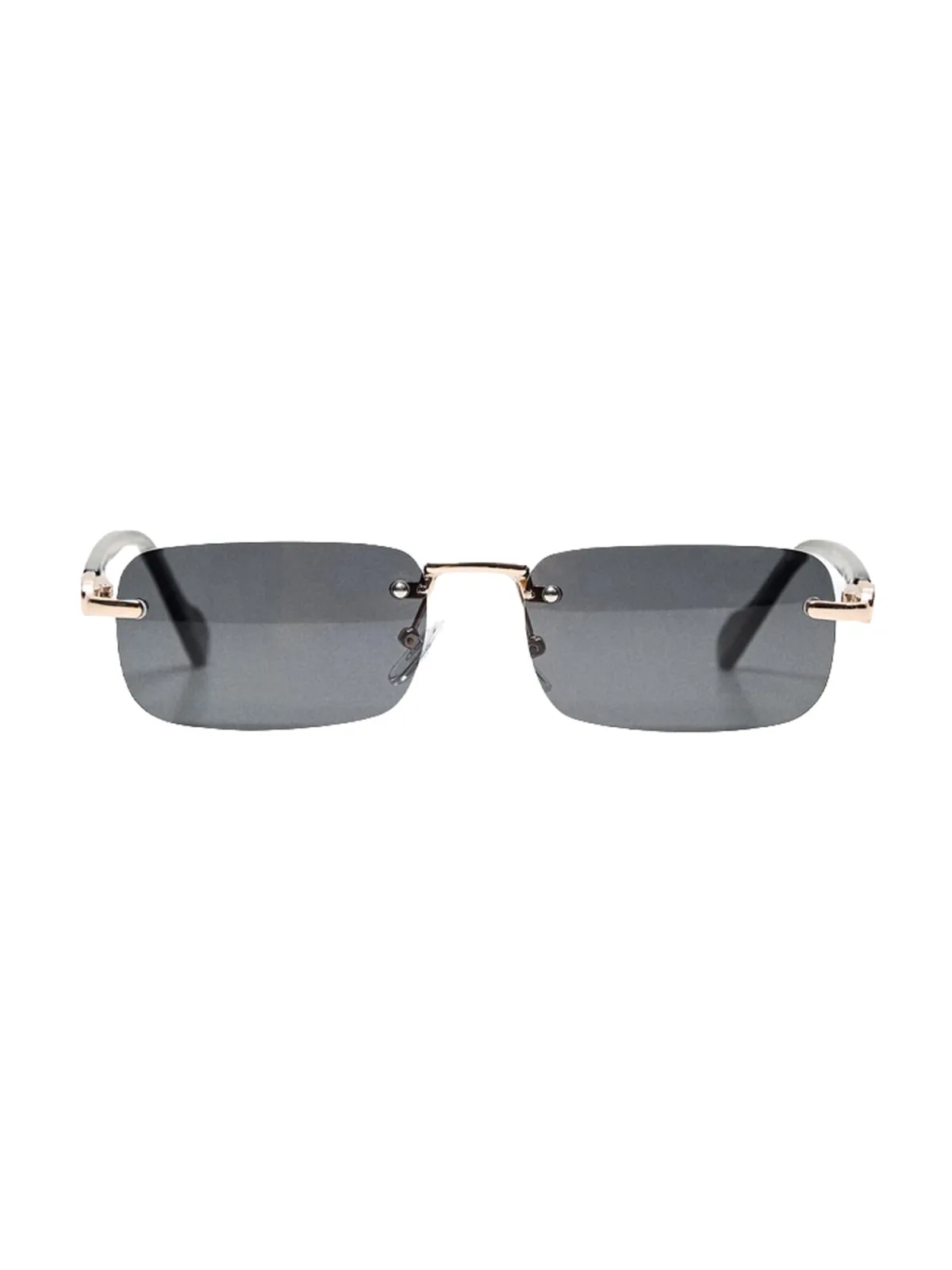 Brillenvorm: Rechthoekig/vierkant; Motief: Effen; Materiaal: Metaal; Extra's: Stevige stof; Details: Neuspads, UV-bescherming