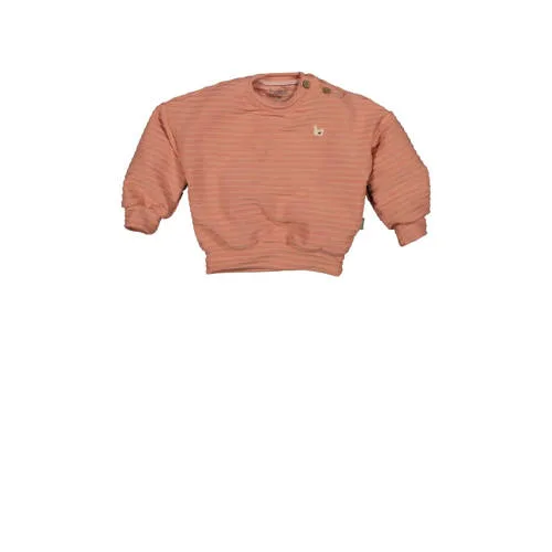 Deze sweater voor meisjes van BESS heeft rechte mouwen en een ronde hals. De sweater heeft een kleur en een drukknop. De stof heeft een textuur die je ziet en voelt.