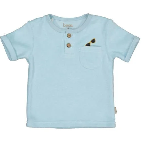 Voor elke dag in de kledingkast van je kleintje is dit lichtblauw badstof jongens T-shirt een fijne basic. De effen lichtblauwe kleur is rustig en makkelijk te combineren, terwijl de zachte badstof prettig aanvoelt op de gevoelige babyhuid. De ronde hals en korte mouwen geven veel bewegingsvrijheid, ideaal voor spelen, kruipen en ontdekken.Zachte stof en slimme details Gemaakt van 80% katoen en zachte badstof voor een comfortabel gevoel op de huid Korte mouwen en rechtvallende pasvorm voor genoeg ruimte om te bewegen Ronde hals met knoopsluiting maakt aan- en uitkleden bij baby en new born makkelijker Borstzak met subtiele borduursels als rustig, speels detail Effen ontwerp in lichtblauw, makkelijk te combineren met leggings, broekjes of shorts Onderdeel van de Daily collectie, perfect voor alledaags gebruikHandig in de dagelijkse routineDit T-shirt past goed bij de drukke momenten van de dag. Door de knoopsluiting bij de hals gaat het shirt soepel over het hoofd. Na een dag vol spelen kan het gewoon in de wasmachine op 30 graden. Niet in de droogtrommel drogen en warm strijken op twee punten houdt de stof langer mooi.BESS voor de allerkleinstenBESS ontwerpt baby- en kinderkleding die aansluit op het dagelijkse leven met kleintjes. Zachte materialen, praktische pasvormen en doordachte details staan centraal. Zo kies je met BESS voor kleding die prettig draagt en makkelijk te verzorgen is.Een comfortabele basic voor elke dag, die er ook nog eens verzorgd uitziet.