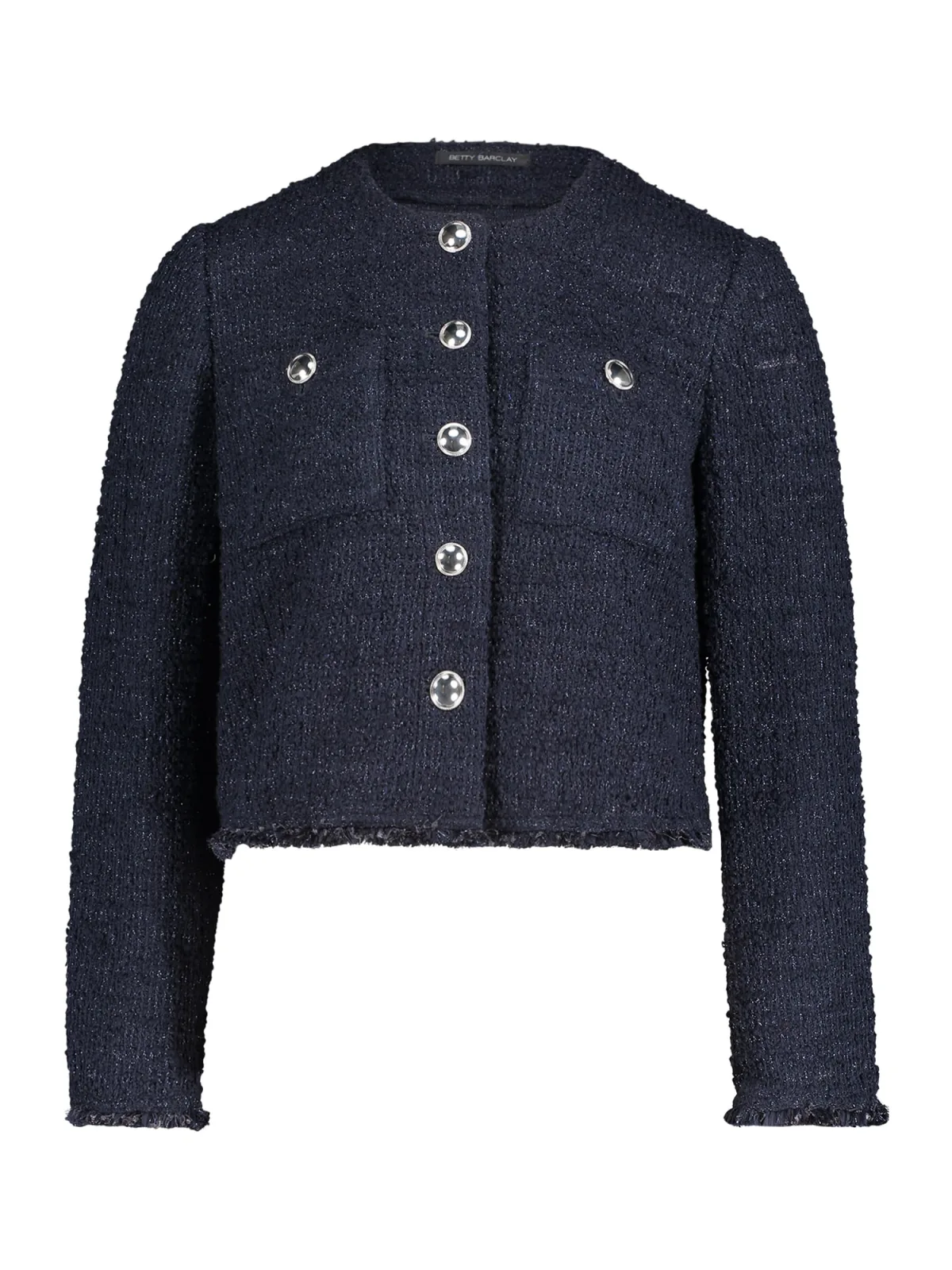 Dames Blazer van Betty Barclay;Katoenmix;Slim Fit;Bouclé-look;Borstzakken;Ronde hals;Ruglengte bij maat 36: 48 cm;Borstwijdte bij maat 36: 46 cm;Mouwlengte bij maat 36: 58 cm