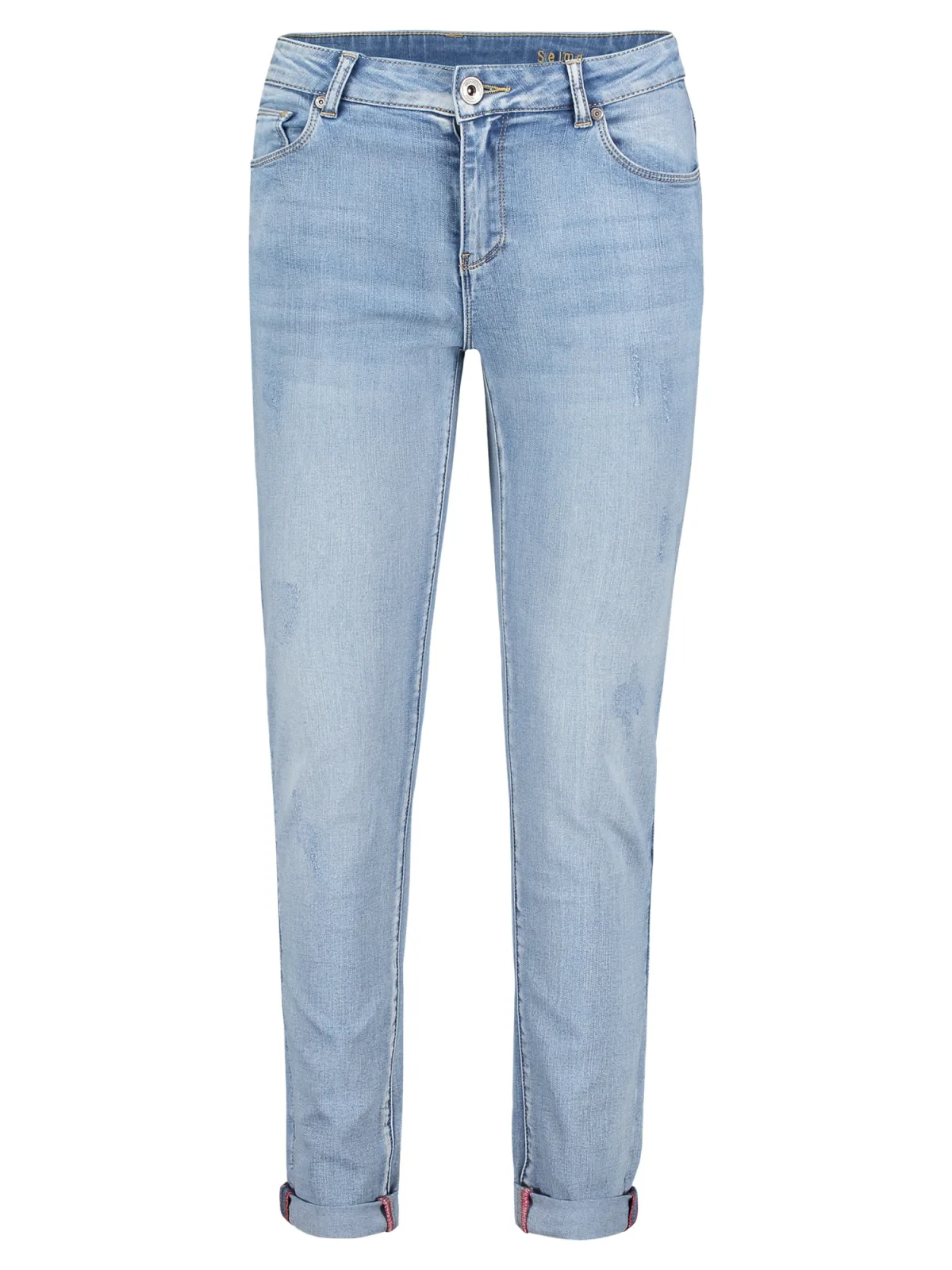 Design: Achterzak, Zakken aan de zijkant; Type sluiting: Ritssluiting; Materiaal: Denim; Motief: Effen; Wassing: Bleached; Lengte: 7/8 lengte; Pasvorm: Slimfit; Taillehoogte: Mid waist
