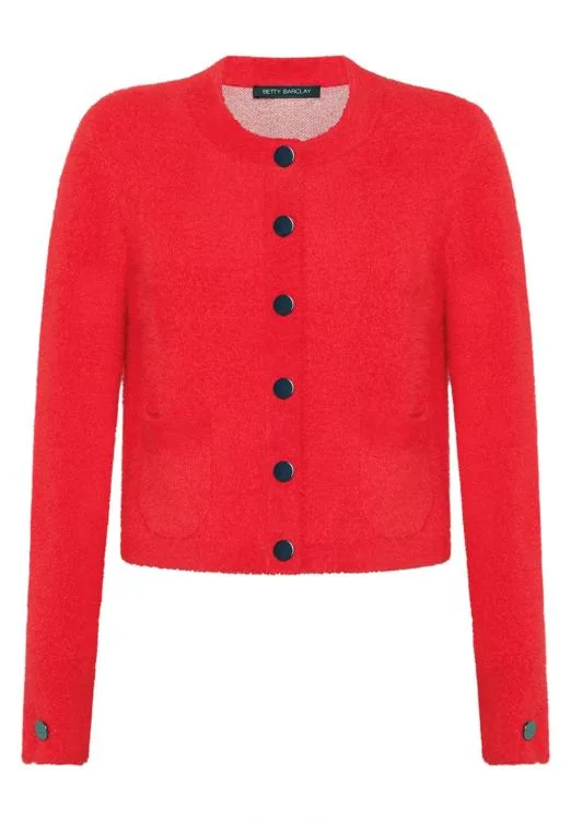 Damesjack van Betty Barclay;tricotlook;Ronde hals;Doorknoopsluiting;Opgestikte zakken;Ruglengte bij maat 36: 44 cm;Mouwlengte bij maat 36: 60 cm