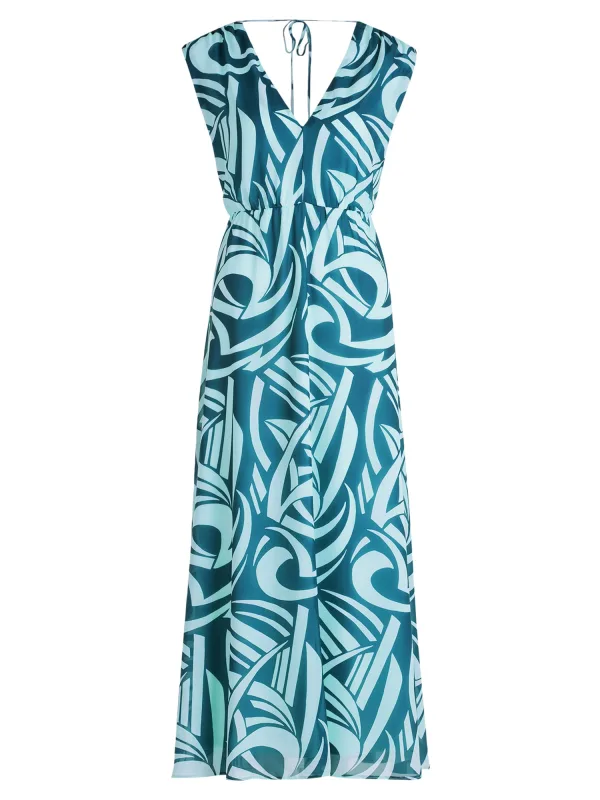 Design: Gevoerde zoom/rand, Om te knopen/binden; Type sluiting: Ritssluiting; Halstype: V-hals; Soort bandjes: Brede bandjes; Details: Gedrapeerd; Extra's: All-over patroon; Lengte: 3/4 lengte; Snit: Getailleerd; Pasvorm: Normale pasvorm; Armlengte: Mouwloos