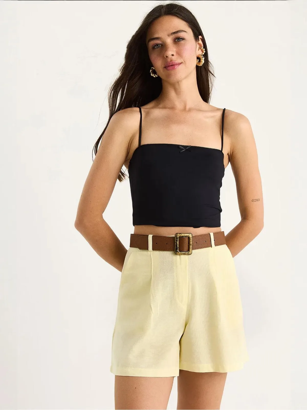 Design: Zakken aan de zijkant; Type sluiting: Ritssluiting; Materiaal: Katoen; Motief: Effen; Details: Plooien; Extra's: Voelt zacht aan, Riemlussen; Lengte: Kort/mini; Pasvorm: Regular; Taillehoogte: High waist