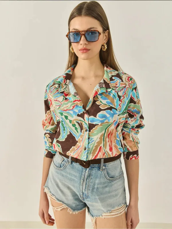 Bianco Lucci Blouse donkerbeige / azuur / donkerbruin / mintgroen