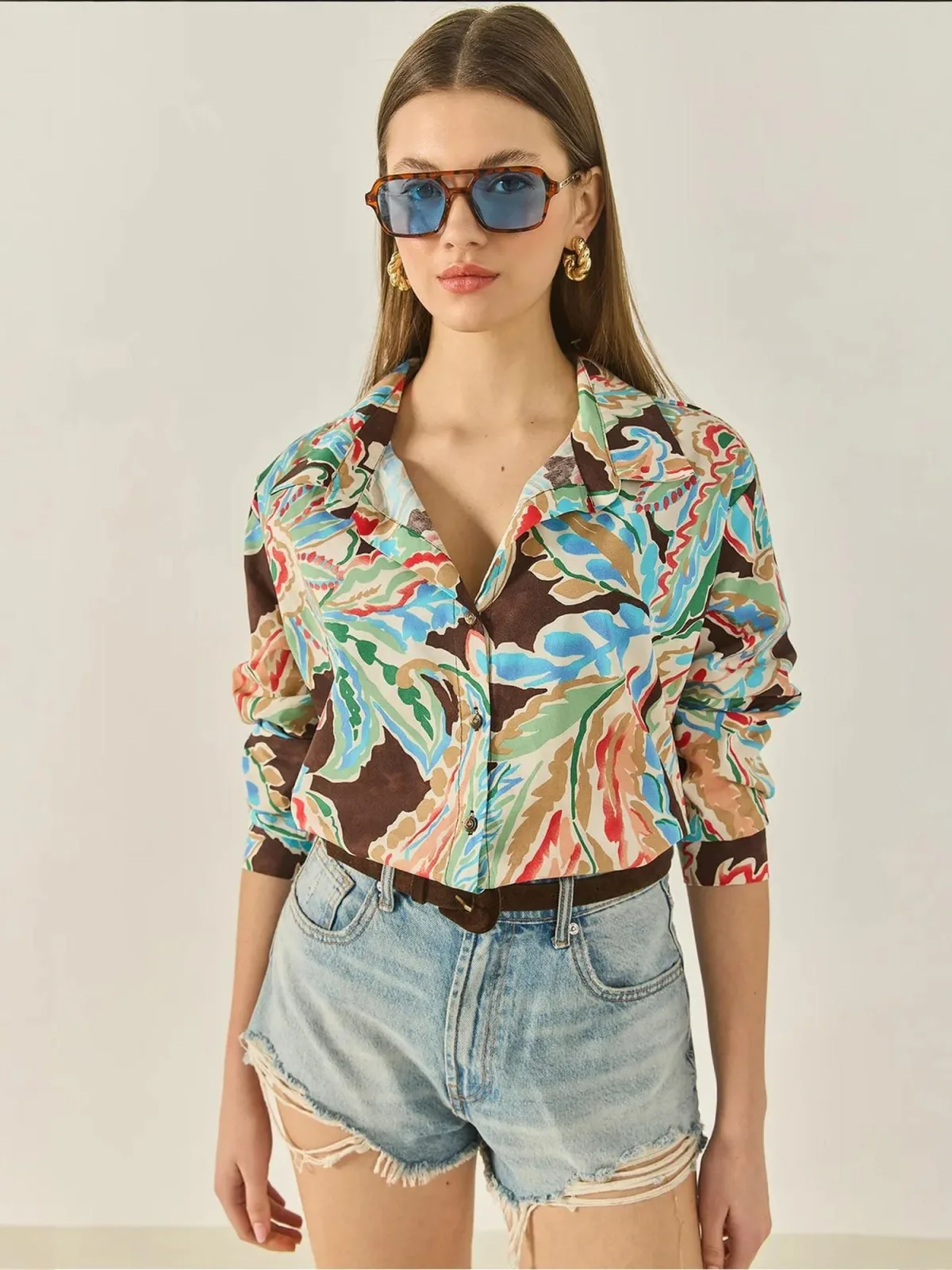 Specificaties: Bianco Lucci Blouse donkerbeige / azuur / donkerbruin / mintgroen