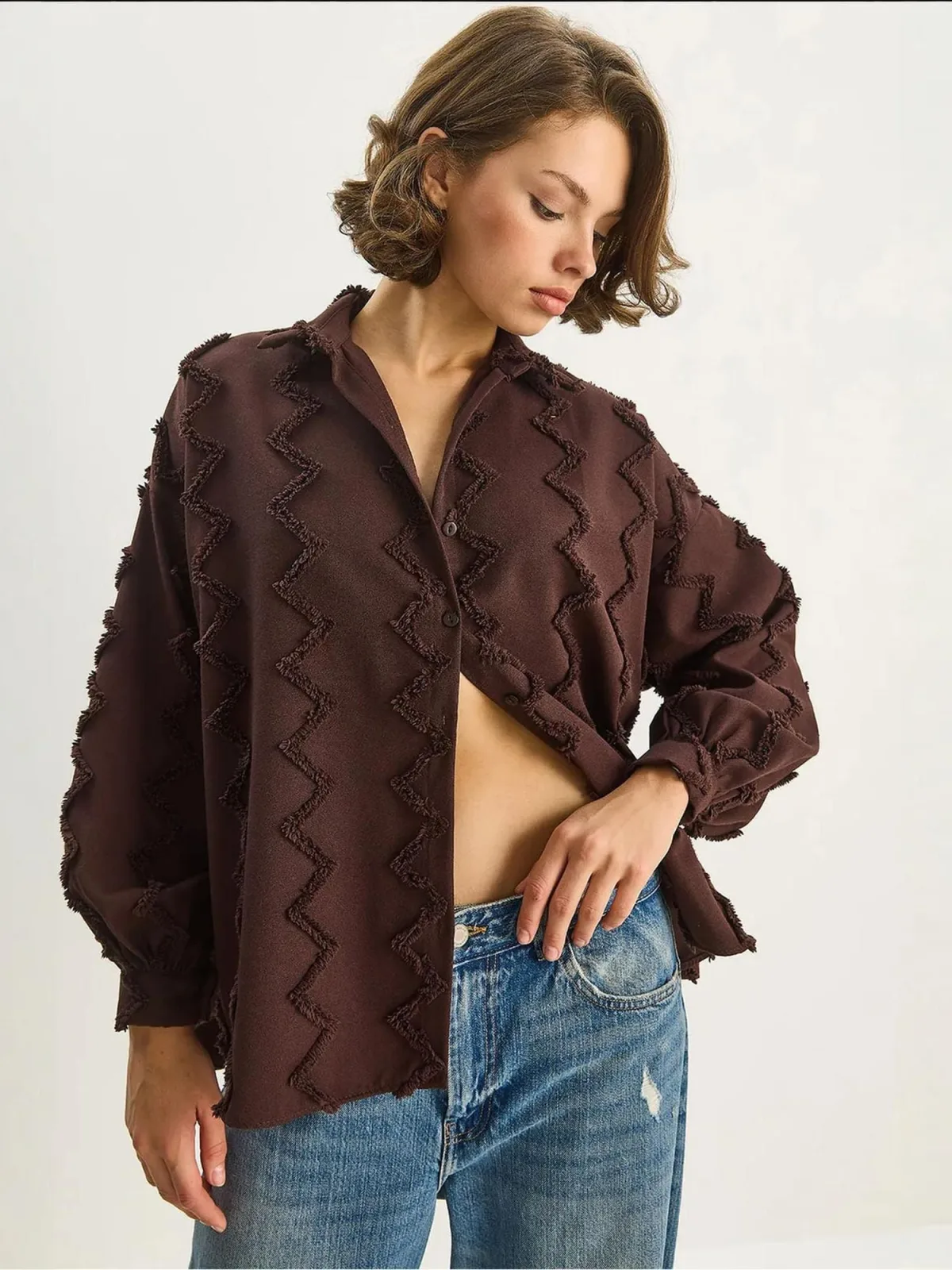 Blouse type: Klassieke blouse; Design: 1-knoops manchetten, Overcut schouder; Type sluiting: Knoopsluiting; Motief: Effen; Kraag: Kentkraag; Details: Franjes, Gedrapeerd; Extra's: Met textuur; Pasvorm: Losse pasvorm; Armlengte: Lange mouw; Lengte: Normale lengte