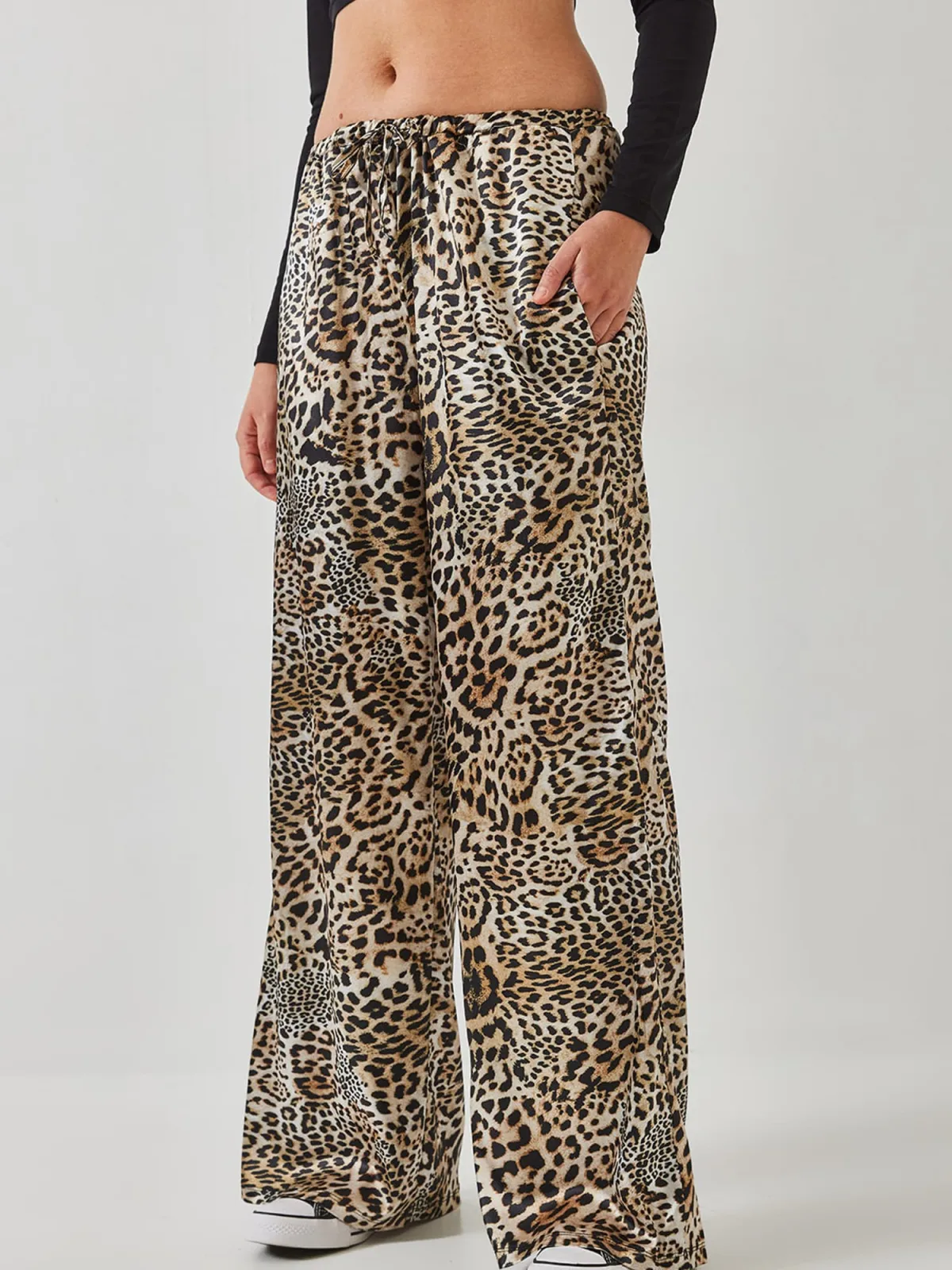 Design: Gevoerde zoom/rand, Taille met trekkoord, Elastische taille/zoom, Zakken aan de zijkant; Motief: Dierenprint; Details: Gedrapeerd; Extra's: All-over patroon, Gladde stof; Lengte: Lang/maxi; Pasvorm: Wide leg; Taillehoogte: Mid waist