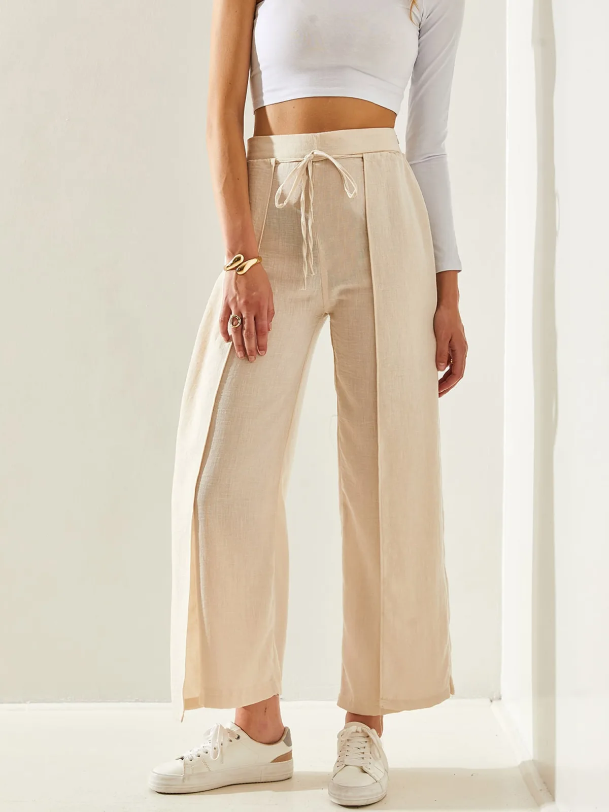Design: Elastische taille/zoom, Om te knopen/binden; Motief: Effen; Details: Wikkel design; Extra's: Op staal naden, Gladde stof; Lengte: 7/8 lengte; Pasvorm: Wide leg; Taillehoogte: High waist