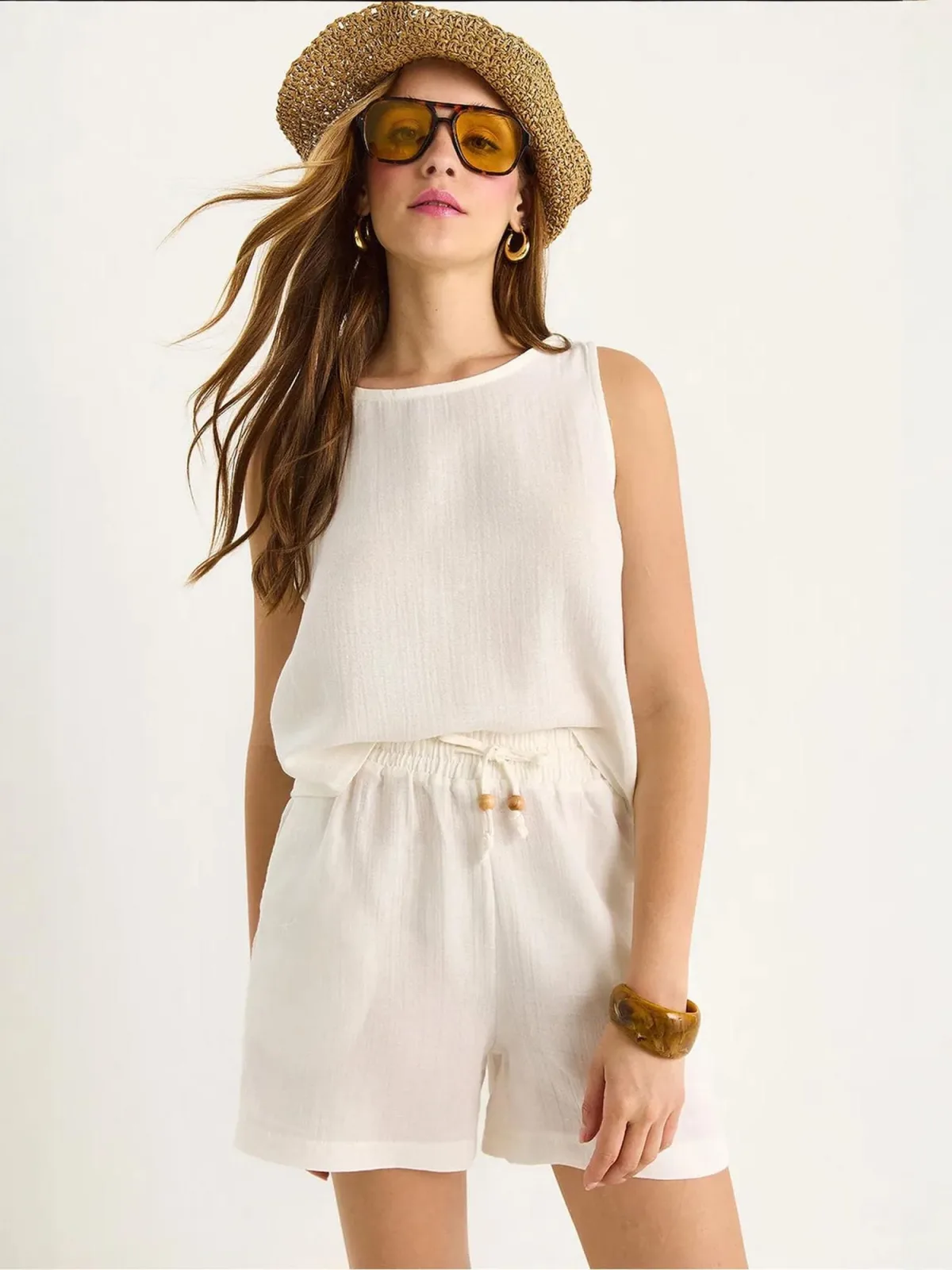 Design: Gevoerde zoom/rand, Taille met trekkoord, Zakken aan de zijkant; Voering: Niet gevoerd; Materiaal: Katoen; Halstype: Ronde hals; Motief: Mélange; Kraag: Zonder kraag; Details: Gedrapeerd; Extra's: Voelt zacht aan; Lengte: Kort/mini; Pasvorm: Normale pasvorm; Armlengte: Mouwloos