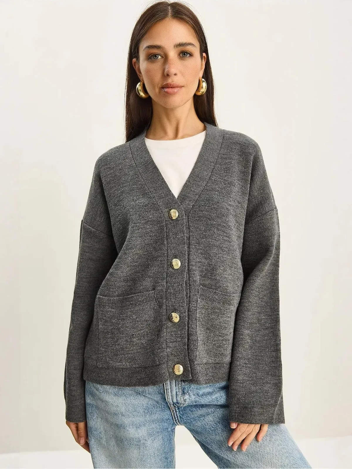 Design: Knop placket; Type sluiting: Knoopsluiting; Halstype: V-hals; Motief: Mélange; Extra's: Fully fashioned; Pasvorm: Normale pasvorm; Armlengte: Lange mouw; Lengte: Normale lengte
