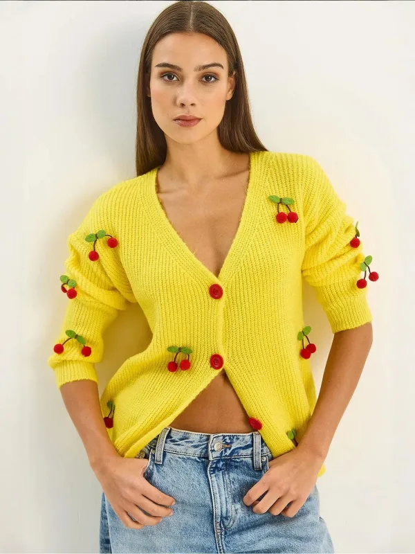 Bianco Lucci Gebreid vest citroengeel / groen / rood Prijzen