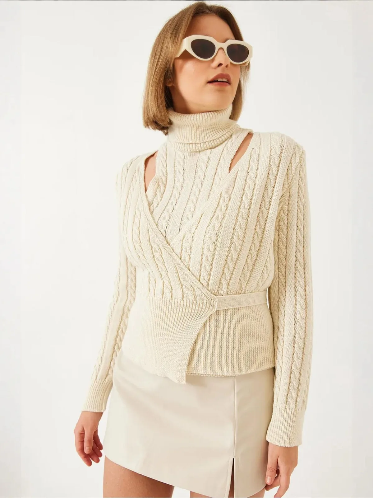 Design: Geribd ceintuurtje, Vlecht brei; Materiaal: Knitwear; Halstype: Col; Motief: Effen; Extra's: Met textuur, Voelt zacht aan; Pasvorm: Slanke pasvorm; Armlengte: Lange mouw; Lengte: Normale lengte