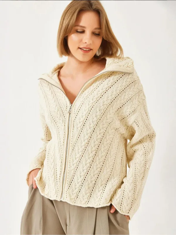 Design: Overcut schouder, Turn-down kraag; Type sluiting: Ritssluiting; Materiaal: Knitwear; Motief: Effen; Details: Mesh; Extra's: Met textuur, Voelt zacht aan; Pasvorm: Losse pasvorm; Armlengte: Lange mouw; Lengte: Normale lengte