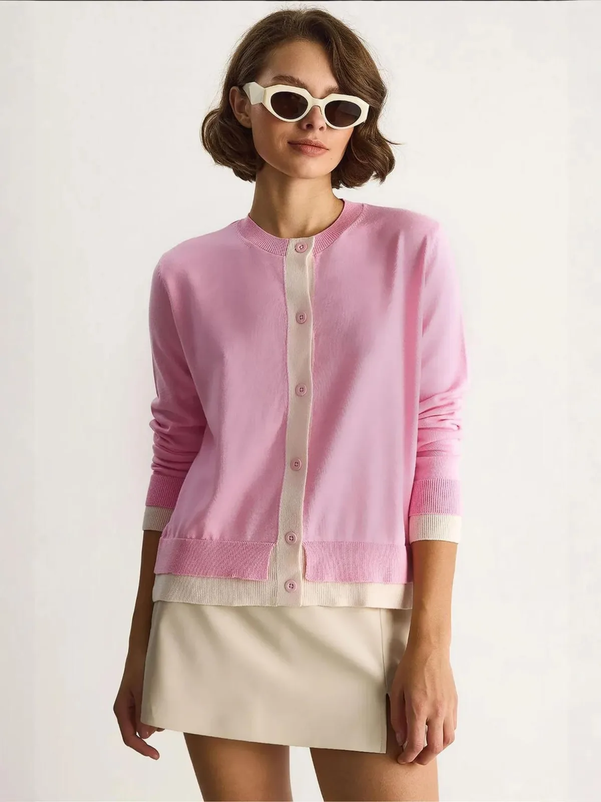 Design: Geribbelde kraag, Knop placket, Geribd ceintuurtje; Type sluiting: Knoopsluiting; Materiaal: Knitwear; Halstype: Ronde hals; Motief: Color-Blocking; Extra's: Voelt zacht aan; Pasvorm: Normale pasvorm; Armlengte: Lange mouw; Lengte: Normale lengte