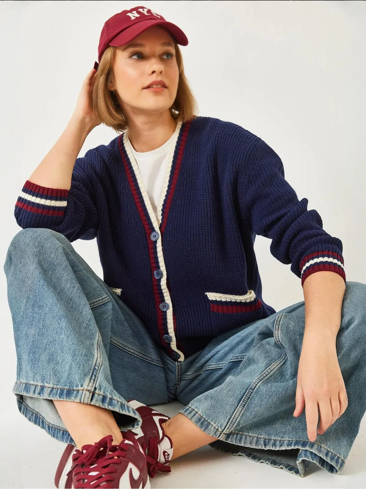 - Bij aboutyou.nl kun je Bianco Lucci Gebreid vest donkerblauw / karmijnrood / wit kopen voor slechts €56,82