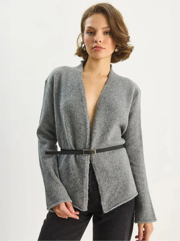 Design: Met riem; Materiaal: Knitwear; Motief: Mélange; Extra's: Met textuur; Pasvorm: Normale pasvorm; Armlengte: Lange mouw; Lengte: Normale lengte
