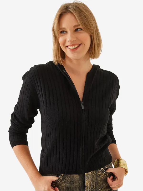 Design: Rechte zoom, Geribbeld gebreid; Type sluiting: Ritssluiting; Materiaal: Knitwear; Halstype: Capuchon; Motief: Effen; Extra's: Met textuur, Voelt zacht aan; Pasvorm: Normale pasvorm; Armlengte: Lange mouw; Lengte: Normale lengte