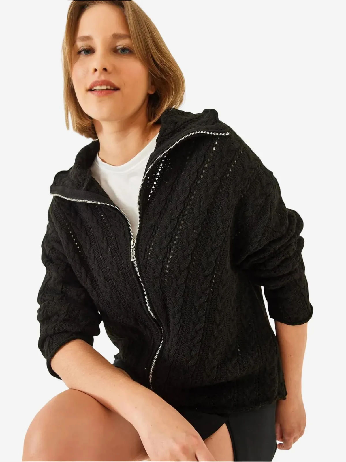 Design: Overcut schouder; Type sluiting: Ritssluiting; Materiaal: Knitwear; Motief: Effen; Details: Mesh; Extra's: Met textuur, Voelt zacht aan; Pasvorm: Losse pasvorm; Armlengte: Lange mouw; Lengte: Normale lengte