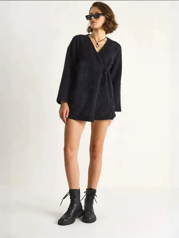Design: Rechte zoom, Overcut schouder; Materiaal: Knitwear; Halstype: V-hals; Motief: Effen; Details: Wikkel design; Extra's: Met textuur, Voelt zacht aan; Pasvorm: Losse pasvorm; Armlengte: Lange mouw; Lengte: Lange pasvorm