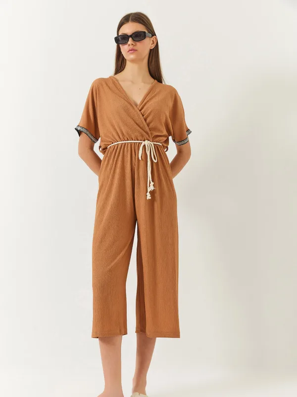 Specificaties: Bianco Lucci Jumpsuit camel / zwart / wit