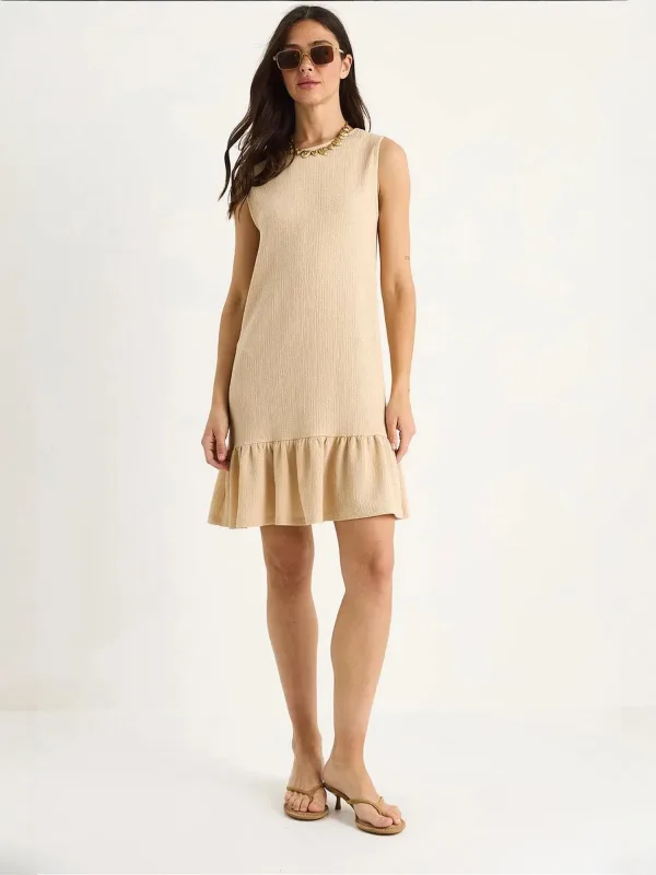 Design: Gevoerde zoom/rand, Flare; Materiaal: Crêpe; Halstype: Ronde hals; Motief: Effen; Soort bandjes: Brede bandjes; Details: Volant; Extra's: Met textuur, Voelt zacht aan; Lengte: Kort/mini; Snit: Uitlopend; Pasvorm: Normale pasvorm; Armlengte: Mouwloos