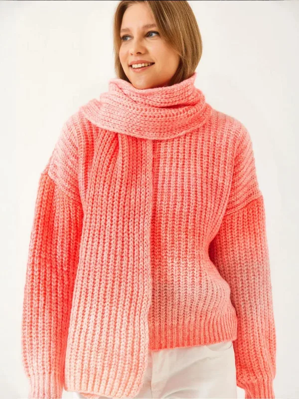 Design: Geribd ceintuurtje, Overcut schouder; Materiaal: Knitwear; Halstype: Ronde hals; Motief: Kleurverloop; Extra's: Fully fashioned; Pasvorm: Wijde pasvorm; Armlengte: Lange mouw; Lengte: Normale lengte