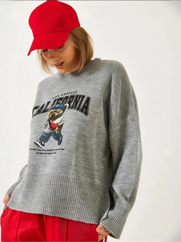 Design: Geribd ceintuurtje, Zijdelingse inkepingen, Overcut schouder; Materiaal: Knitwear; Halstype: Ronde hals; Motief: Motiefprint; Extra's: Fully fashioned, Voelt zacht aan; Pasvorm: Wijde pasvorm; Armlengte: Lange mouw; Lengte: Normale lengte