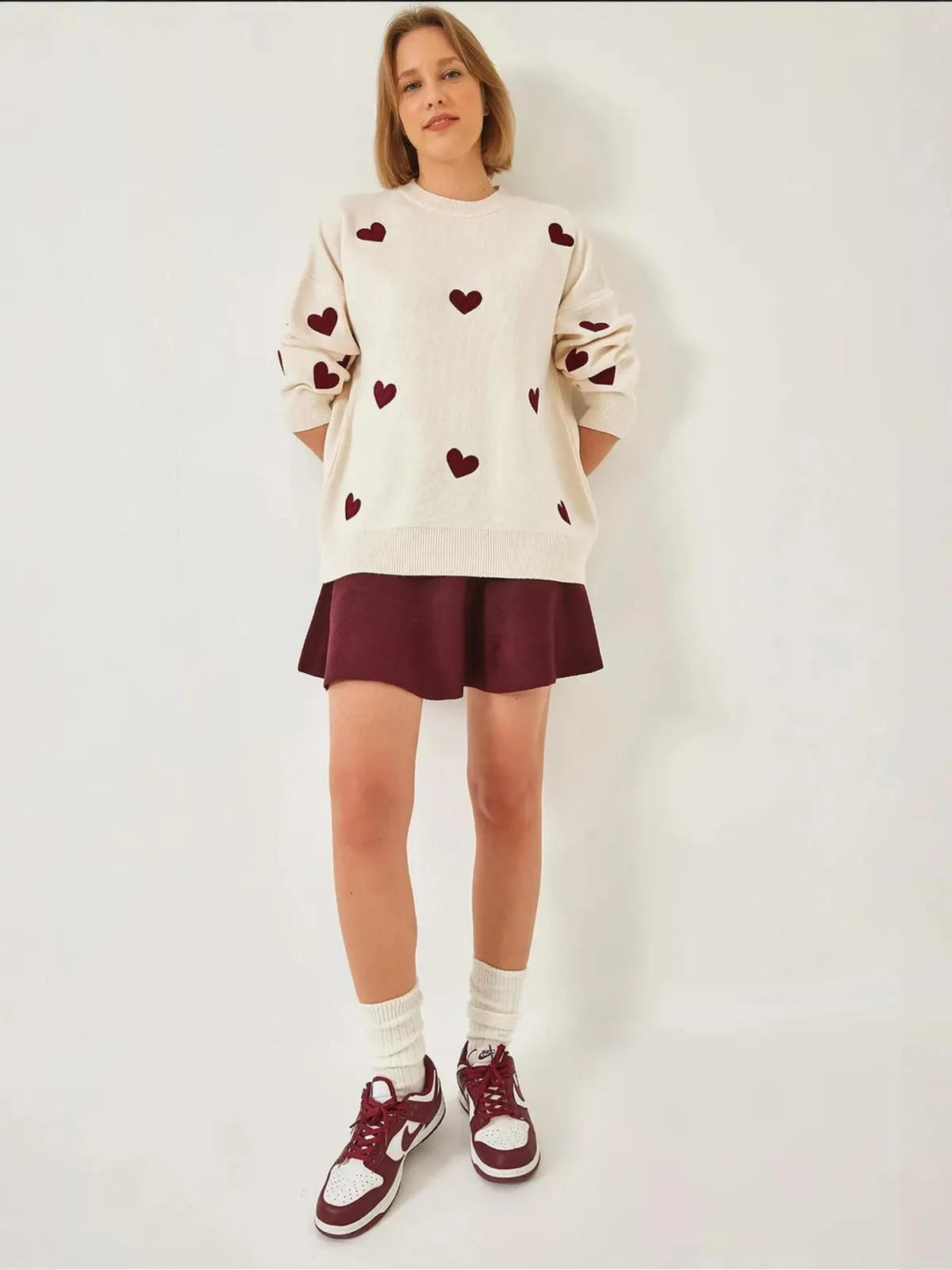 Bianco Lucci Oversized trui ecru / robijnrood