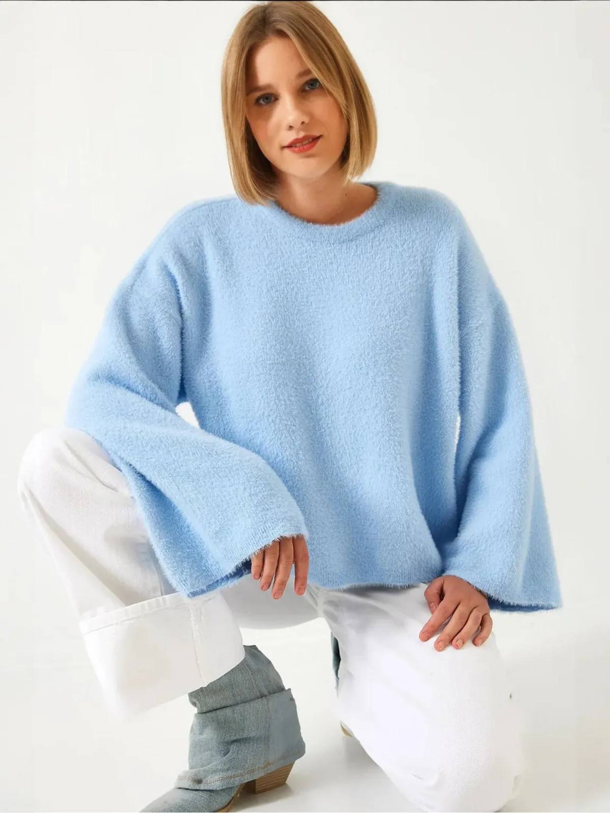 - Bij aboutyou.nl kun je Bianco Lucci Oversized trui lichtblauw kopen voor slechts €38,43