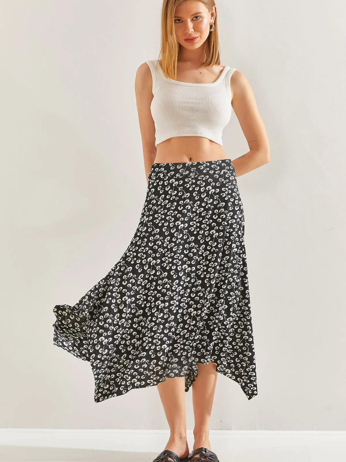 Design: Asymmetrische zoom, Elastische taille/zoom; Motief: Bloemenprint; Rokvorm: A-lijn rok; Extra's: All-over patroon, Gladde stof; Lengte: 3/4 lengte; Pasvorm: Normale pasvorm; Taillehoogte: High waist