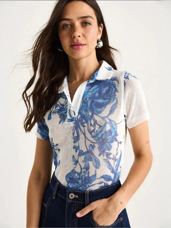 Design: Gevoerde zoom/rand; Type sluiting: Knoopsluiting; Materiaal: Jersey; Halstype: Polokraag; Motief: Bloemenprint; Extra's: Voelt zacht aan; Pasvorm: Normale pasvorm; Armlengte: Kwartmouw; Lengte: Normale lengte