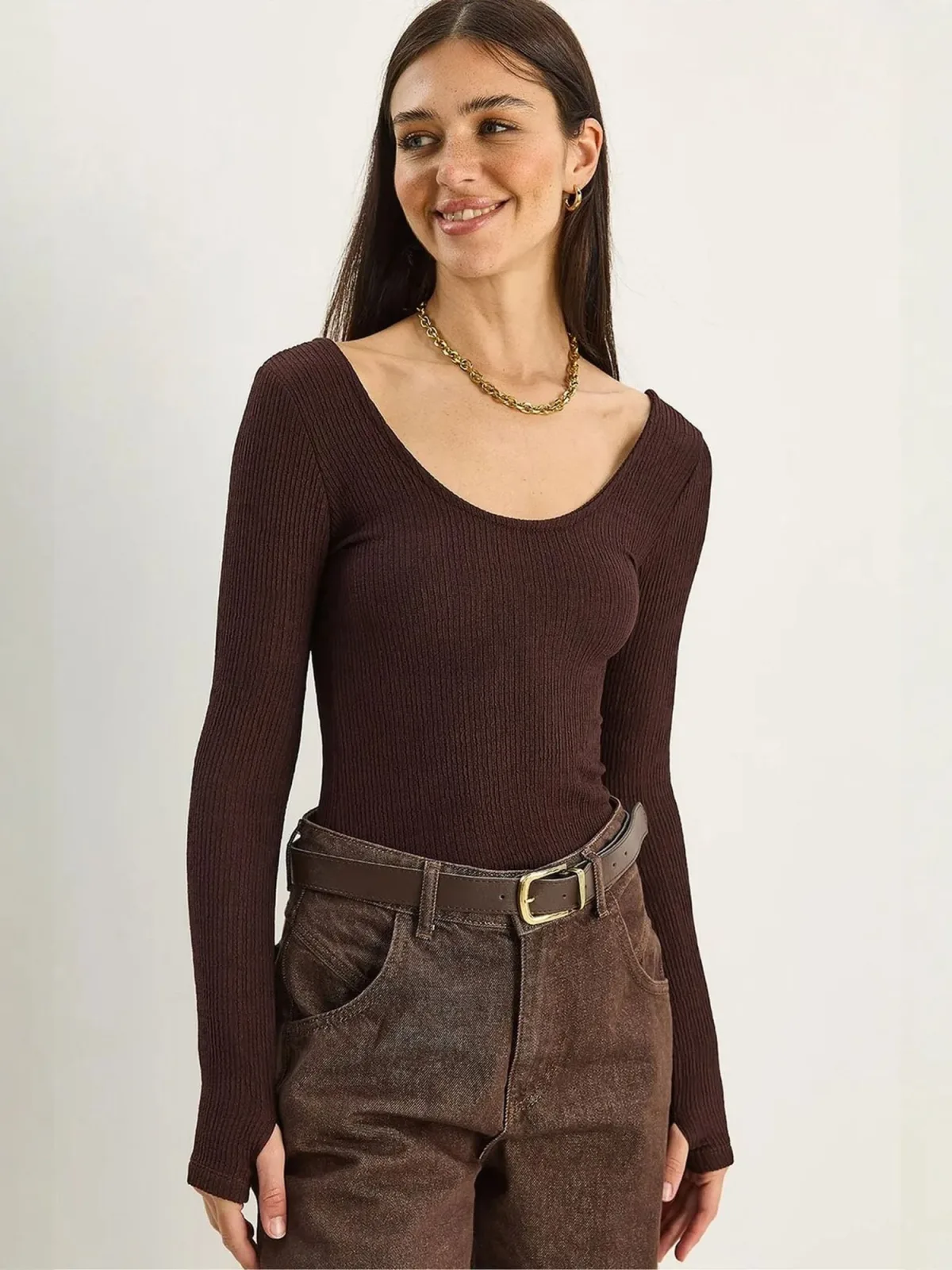 Blouse type: Blouseshirt; Design: Extra lange mouwen; Halstype: Ronde hals; Motief: Effen; Kraag: Zonder kraag; Extra's: Met textuur; Pasvorm: Slanke pasvorm; Armlengte: Lange mouw; Lengte: Normale lengte