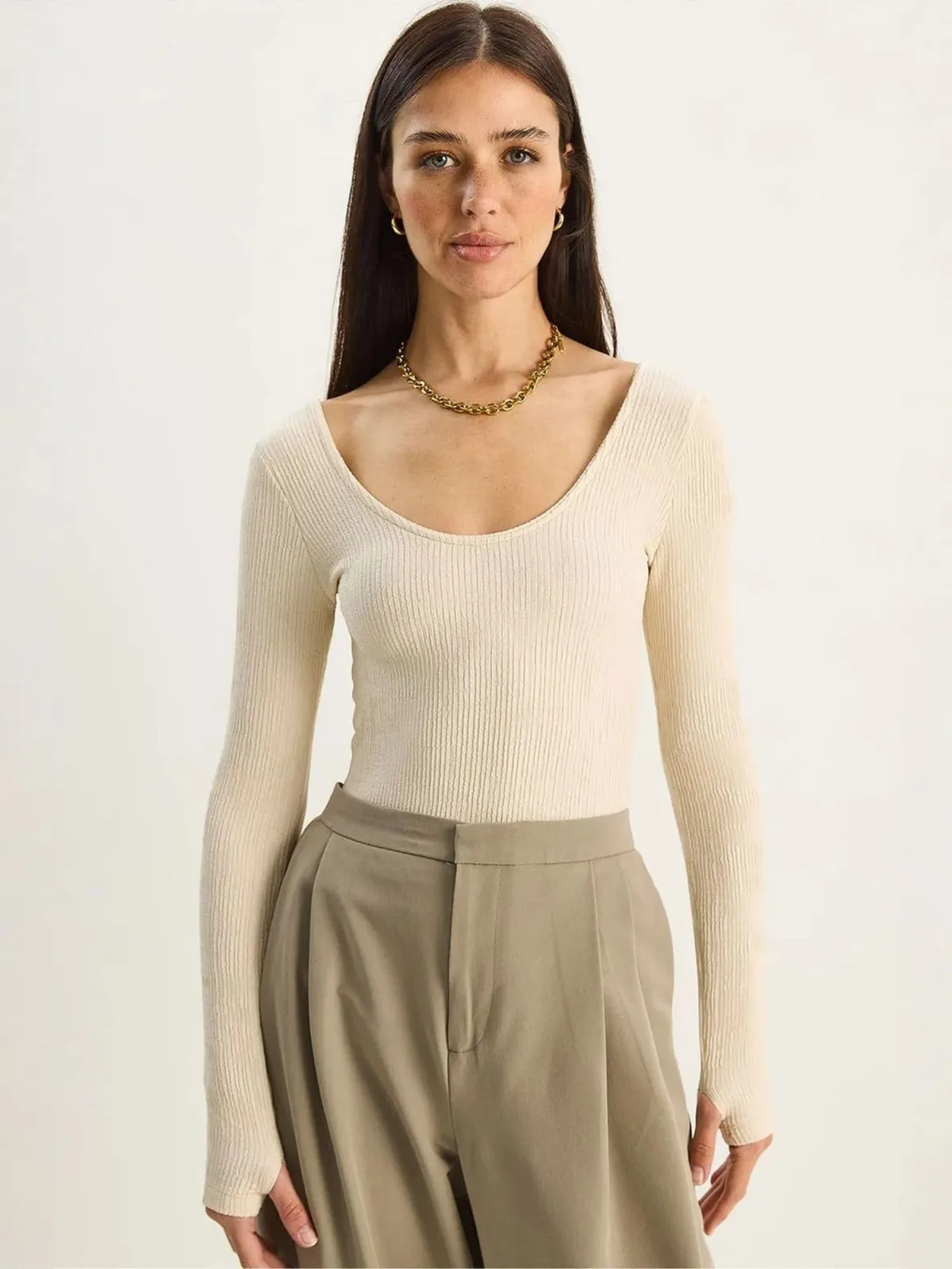 Blouse type: Blouseshirt; Design: Duimopening; Halstype: Ronde hals; Motief: Effen; Kraag: Zonder kraag; Extra's: Met textuur; Pasvorm: Slanke pasvorm; Armlengte: Lange mouw; Lengte: Normale lengte