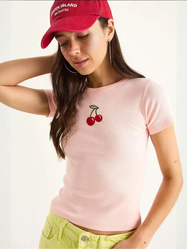 Design: Geribbelde kraag; Materiaal: Jersey; Halstype: Ronde hals; Motief: Motiefprint; Details: Borduursels; Extra's: Voelt zacht aan; Pasvorm: Slanke pasvorm; Armlengte: Kwartmouw; Lengte: Korte pasvorm