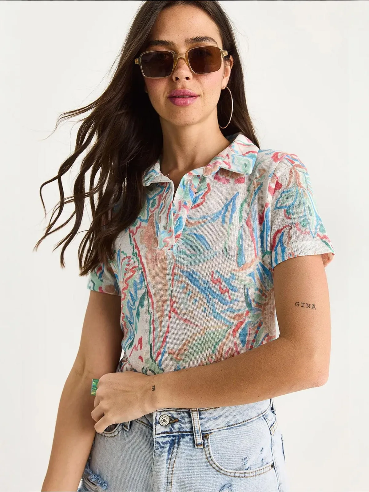 Design: Turn-down kraag; Type sluiting: Knoopsluiting; Materiaal: Jersey; Halstype: Polokraag; Motief: Bloemenprint; Extra's: All-over patroon; Pasvorm: Normale pasvorm; Armlengte: Kwartmouw; Lengte: Normale lengte