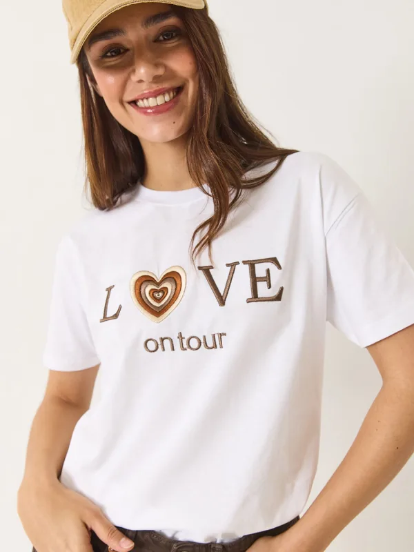 Design: Gevoerde zoom/rand, Geribbelde kraag; Materiaal: Jersey; Halstype: Ronde hals; Motief: Tekst print; Details: Borduursels; Extra's: Applicaties, Voelt zacht aan; Pasvorm: Losse pasvorm; Armlengte: Kwartmouw; Lengte: Normale lengte