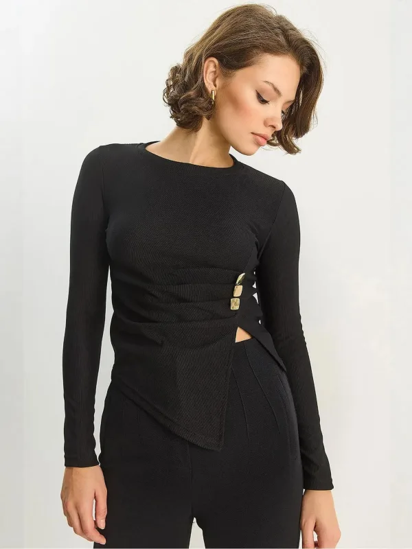 Design: Gevoerde zoom/rand, Asymmetrische zoom, Geribbelde kraag; Materiaal: Jersey; Halstype: Ronde hals; Motief: Effen; Details: Gedrapeerd; Extra's: Op staal naden, Voelt zacht aan, Met LYCRA®; Pasvorm: Slanke pasvorm; Armlengte: Lange mouw; Lengte: Normale lengte