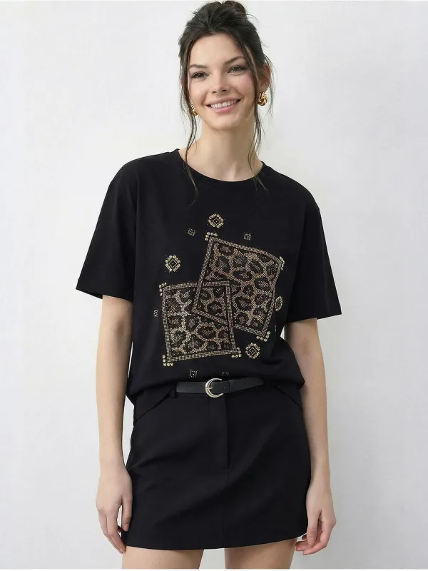 Design: Gevoerde zoom/rand, Geribbelde kraag, Rechte zoom; Materiaal: Jersey; Halstype: Ronde hals; Motief: Effen; Details: Pailletten, Sierstenen; Extra's: Glanzend, Op staal naden, Voelt zacht aan; Pasvorm: Normale pasvorm; Armlengte: Kwartmouw; Lengte: Normale lengte