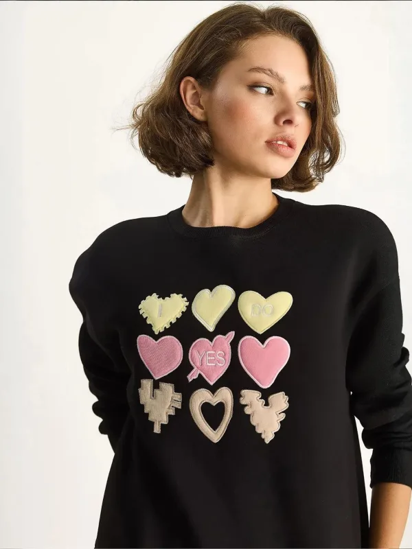 Design: Geribbelde kraag, Geribd ceintuurtje; Materiaal: Sweatstof; Halstype: Ronde hals; Motief: Motiefprint; Details: Borduursels; Extra's: Op staal naden, Voelt zacht aan; Pasvorm: Losse pasvorm; Armlengte: Lange mouw; Lengte: Normale lengte