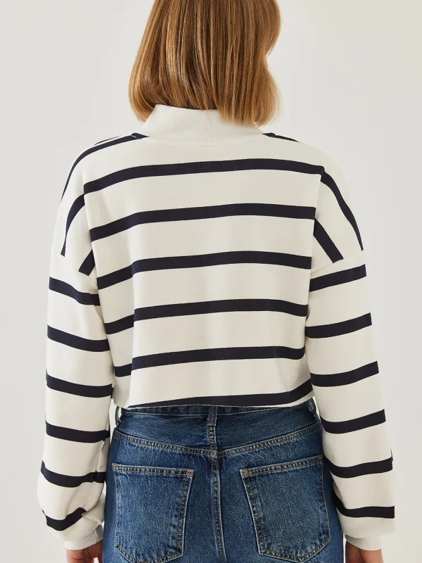 Design: Geribbelde kraag, Geribd ceintuurtje, Overcut schouder, Halve rits; Type sluiting: Ritssluiting; Materiaal: Sweatstof; Halstype: Schipperskraag; Motief: Gestreept; Extra's: All-over patroon, Voelt zacht aan; Pasvorm: Losse pasvorm; Armlengte: Lange mouw; Lengte: Korte pasvorm