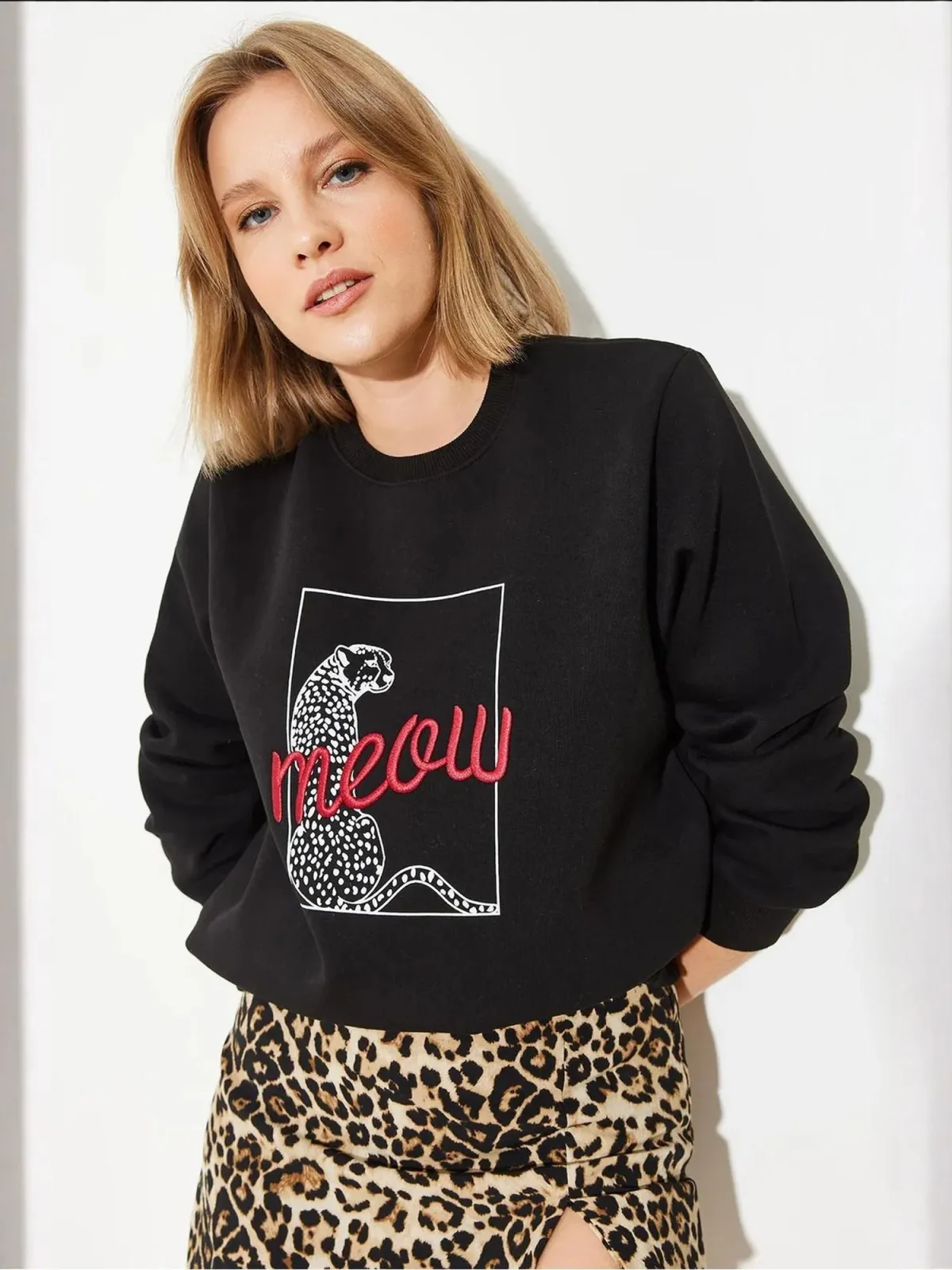 Design: Geribd ceintuurtje; Materiaal: Sweatstof; Halstype: Ronde hals; Motief: Motiefprint; Details: Borduursels; Extra's: Voelt zacht aan; Pasvorm: Losse pasvorm; Armlengte: Lange mouw; Lengte: Normale lengte
