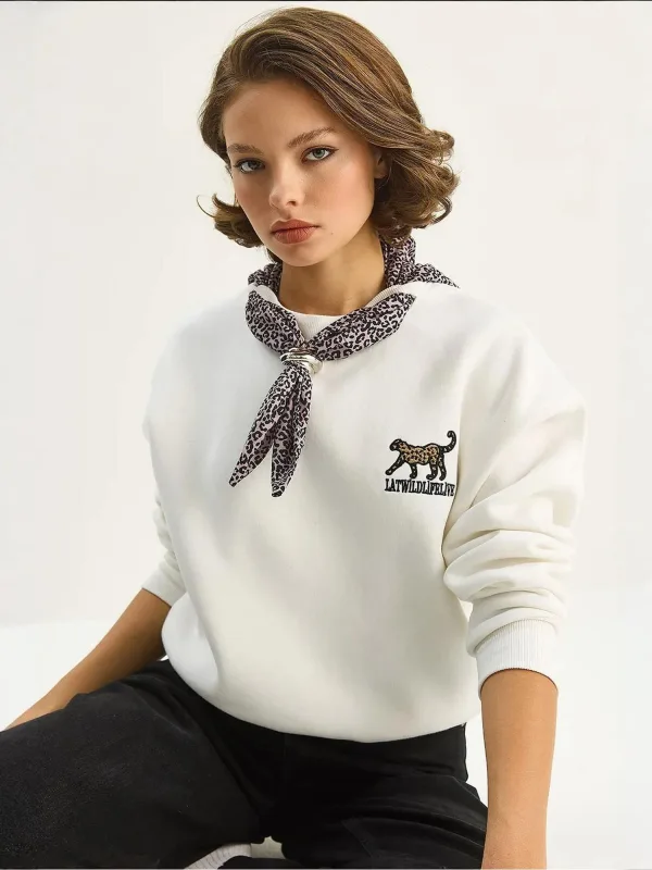 Design: Geribbelde kraag, Geribd ceintuurtje, Overcut schouder; Materiaal: Sweatstof; Halstype: Ronde hals; Motief: Motiefprint; Details: Borduursels; Extra's: Applicaties, Voelt zacht aan; Pasvorm: Losse pasvorm; Armlengte: Lange mouw; Lengte: Normale lengte