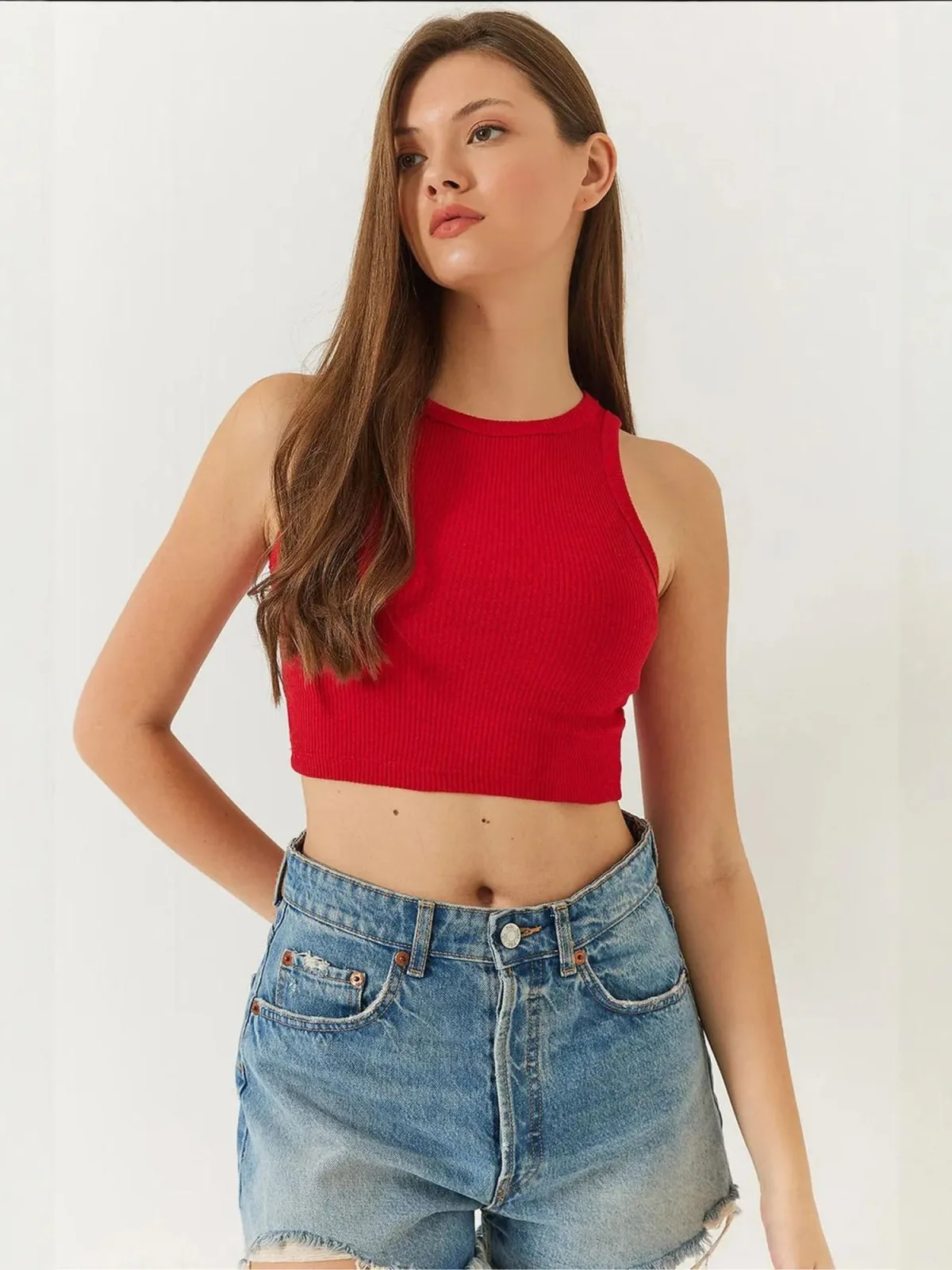 Specificaties: Bianco Lucci Top grijs gemêleerd / rood