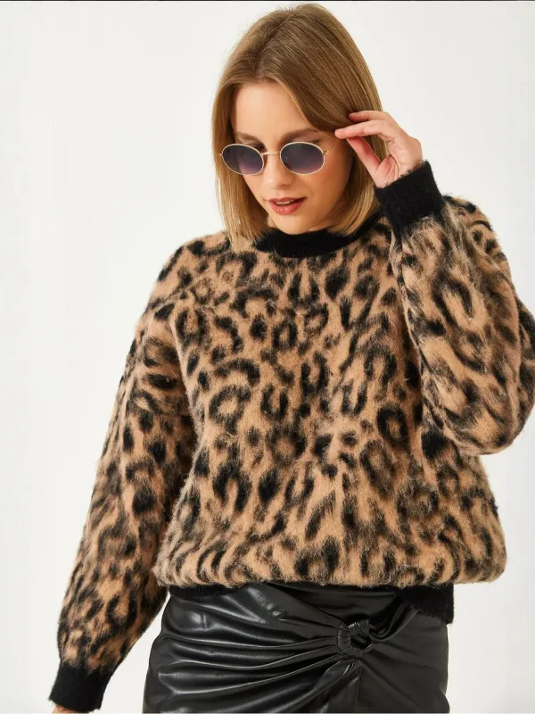 Design: Geribbelde kraag; Materiaal: Knitwear; Halstype: Ronde hals; Motief: Dierenprint; Extra's: All-over patroon; Pasvorm: Losse pasvorm; Armlengte: Lange mouw; Lengte: Normale lengte