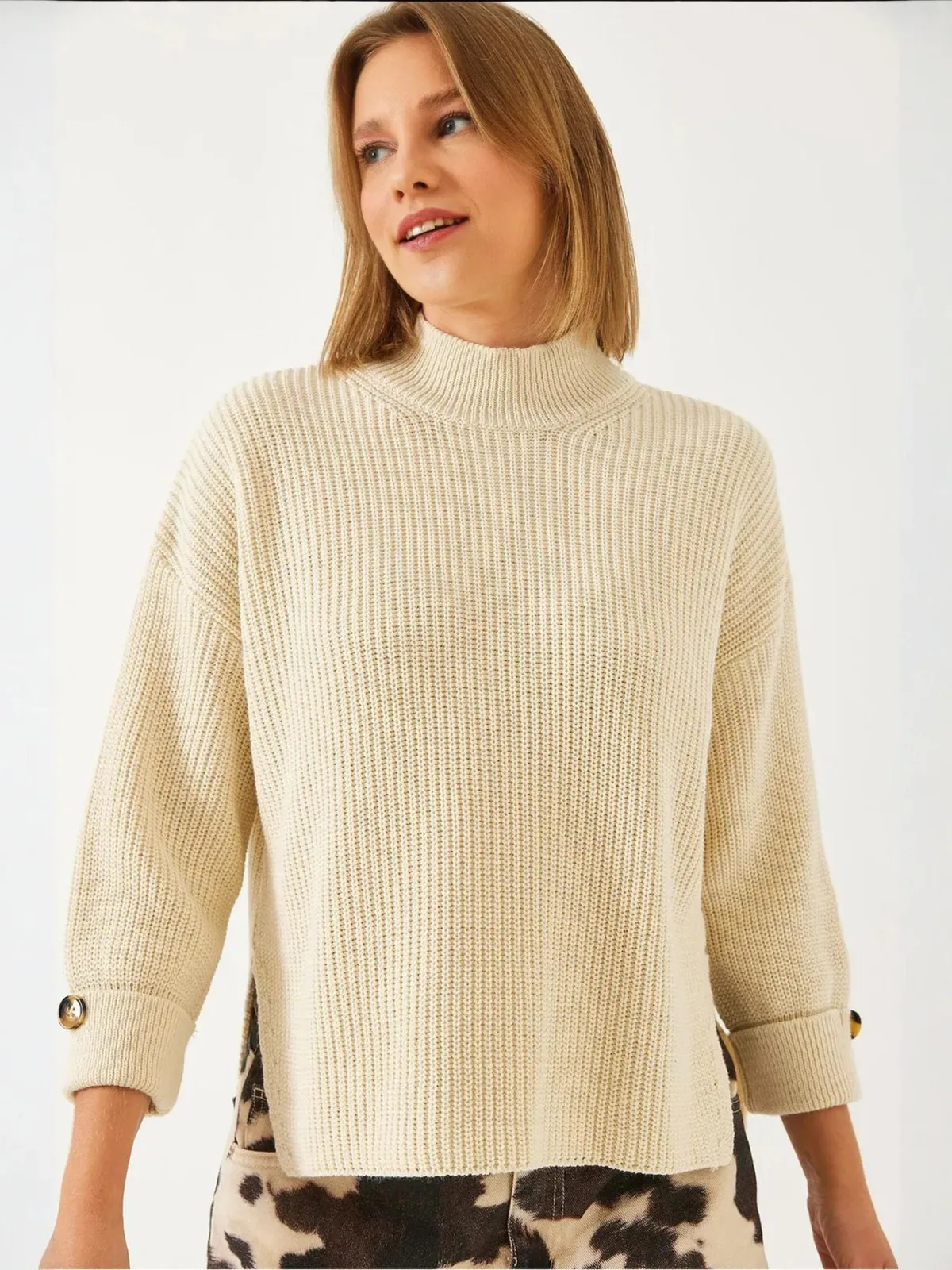 Design: Geribbelde kraag, Overcut schouder; Materiaal: Knitwear; Halstype: Opstaande kraag; Motief: Effen; Extra's: Met textuur, Voelt zacht aan; Pasvorm: Losse pasvorm; Armlengte: Lange mouw; Lengte: Normale lengte