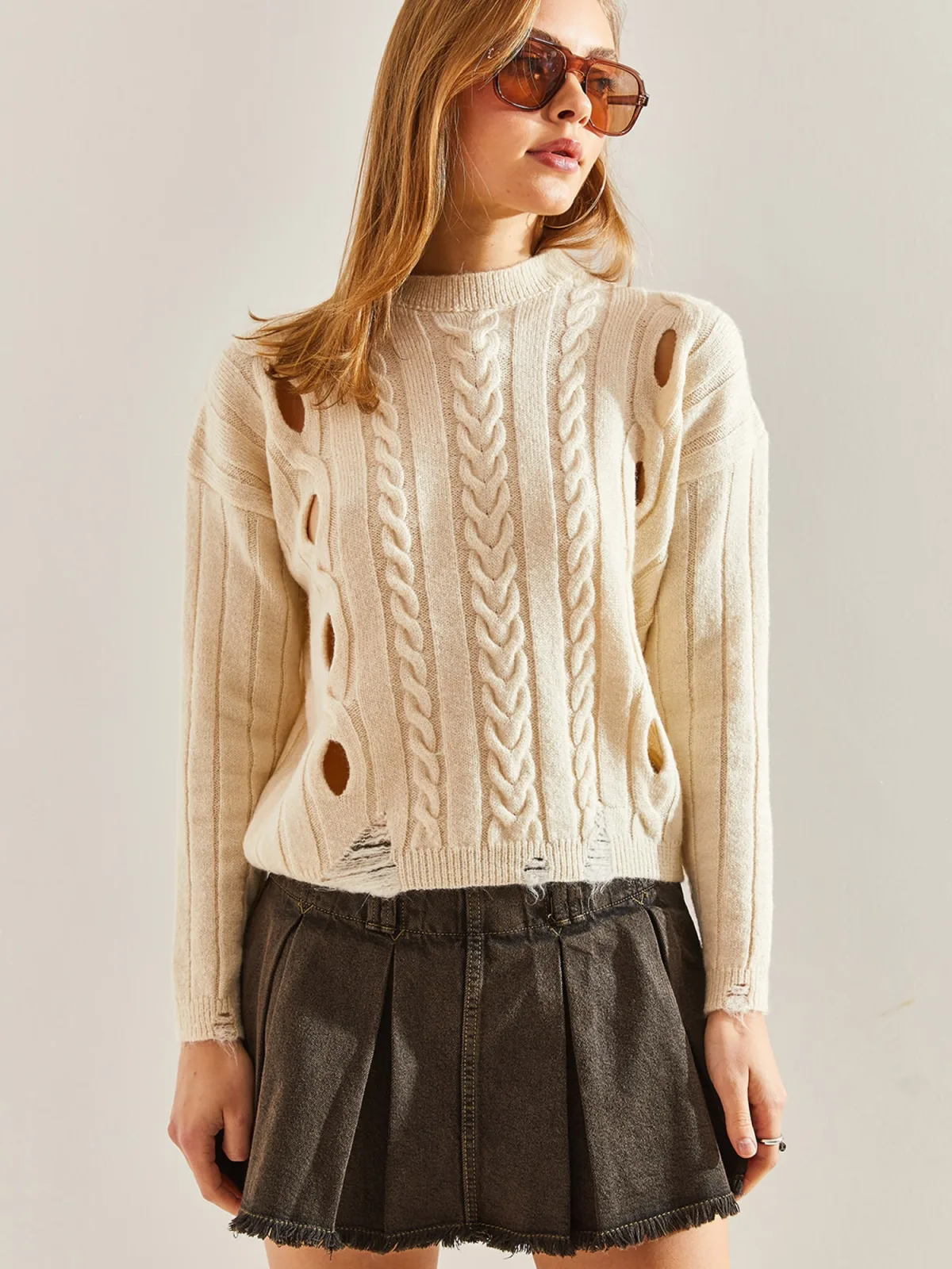 Design: Geribbelde kraag, Geribd ceintuurtje, Overcut schouder, Vlecht brei; Materiaal: Knitwear; Halstype: Opstaande kraag; Motief: Effen; Details: Cut-outs; Extra's: Licht transparant, Fully fashioned, Met textuur; Pasvorm: Losse pasvorm; Armlengte: Lange mouw; Lengte: Normale lengte