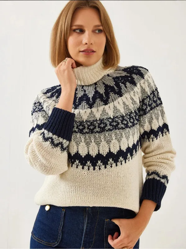 Bianco Lucci Trui crème / donkerblauw / grijs Prijzen