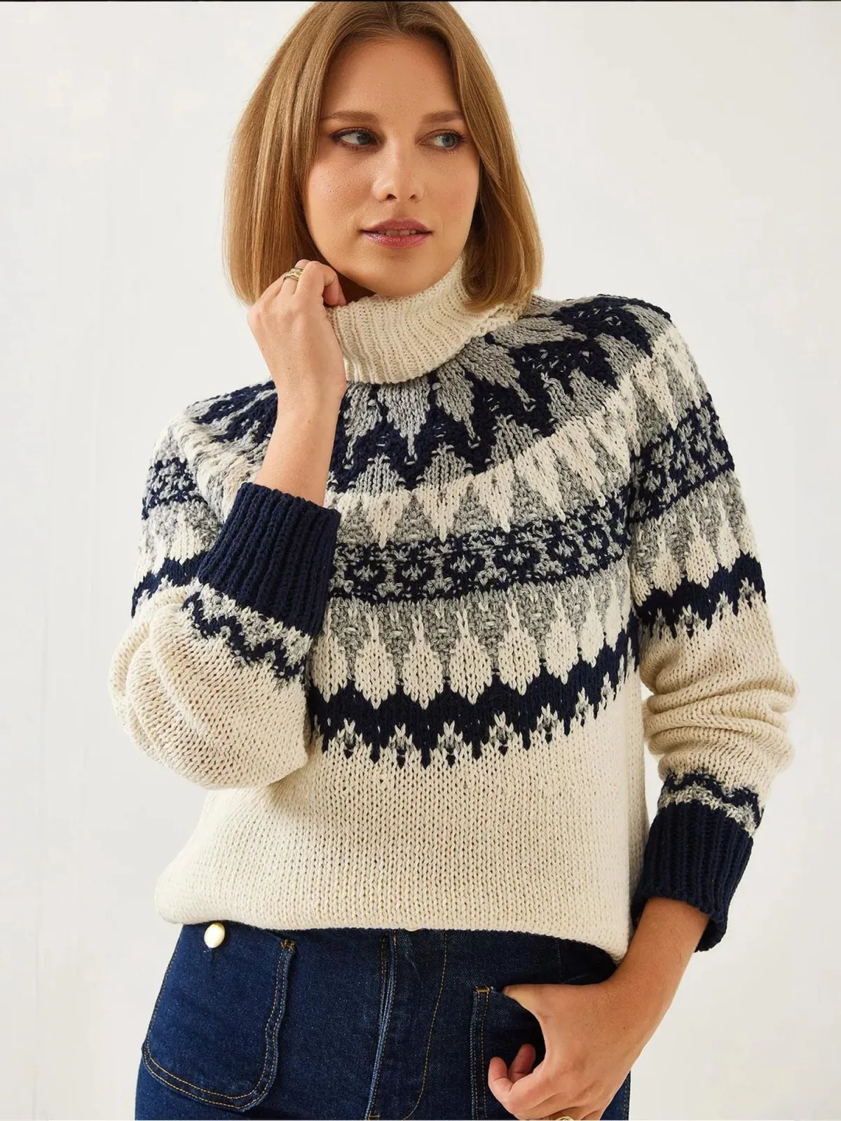 Specificaties: Bianco Lucci Trui crème / donkerblauw / grijs