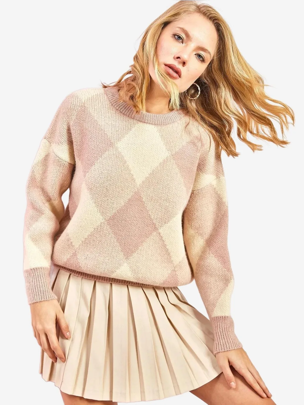 Design: Overcut schouder; Materiaal: Knitwear; Halstype: Ronde hals; Extra's: All-over patroon; Pasvorm: Losse pasvorm; Armlengte: Lange mouw; Lengte: Normale lengte